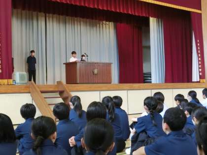 まずは生徒代表から 公開日 2024/07/19 更新日 2024/07/19 今日のできごと 今日は1学期終業式。体育館に静かに集まった桜木中生。まずは生徒代表の言葉から始まりました(菅野) いいね(0)