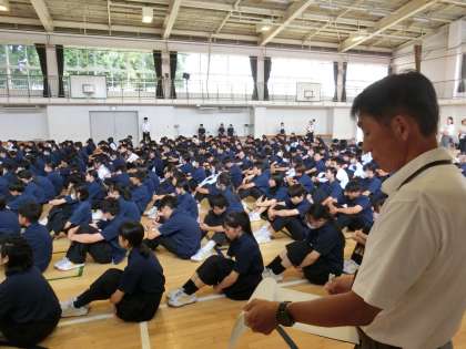 心を動かすもの 公開日 2024/07/19 更新日 2024/07/19 今日のできごと 終業式では、生徒も先生も色々な立場から話をします。話をする人は原稿を用意し、それを直前まで見返し準備をします。それは校長先生とて同じです。人前で誰も言い間違えをしたくない、という気持ちがあることも事実ですが、それよりも桜木中生たちの聞く姿勢、態度が素晴らしいことが話す人の心を動かします。聞く人の視線が自分に集中していると「しっかり伝えなきゃ」という気持ちも高まります(菅野) いいね(0)