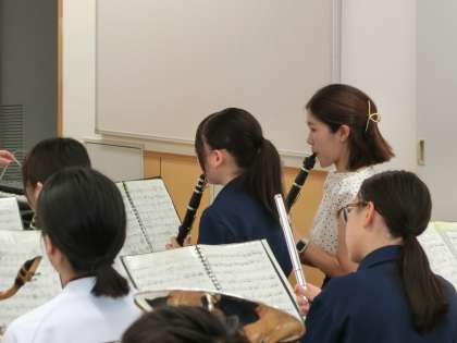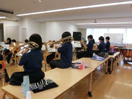夏休みの部活動 吹奏楽部2 公開日 2024/07/23 更新日 2024/07/23 今日のできごと 限られた時間の中で、自分の楽器の練習と全体を合わせる練習をこなすのは大変なことです。しかも都心の住居では、自由に楽器の音を出して練習できるところはそう多くはありません。あれ?見たことがある大人が生徒と一緒に練習していると思ったら、先生でした。ご自宅から楽器を持参して参加をしています(菅野) いいね(1)