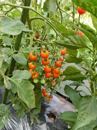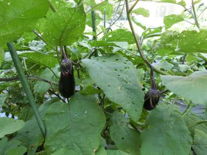 夏休みも半分が過ぎようとしています。園芸部が育てている野菜もこの暑さに負けず、濃い緑の葉でおおわれていました(菅野)