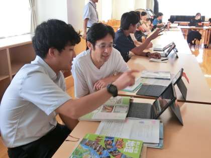 グループワーク 公開日 2024/08/29 更新日 2024/08/29 今日のできごと 実践報告の後にペアで、共通の課題についての協議を行いました。みな真剣に意見交換をしています。もちろん校長先生も話し合いに加わっています(菅野) いいね(0)