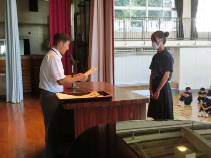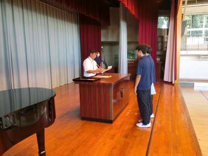 始業式4 公開日 2024/09/02 更新日 2024/09/02 今日のできごと 校歌に続き、夏休み中に部活動での活躍でいただいた表彰状の授与がありました。画像は陸上競技部です(菅野) いいね(0)