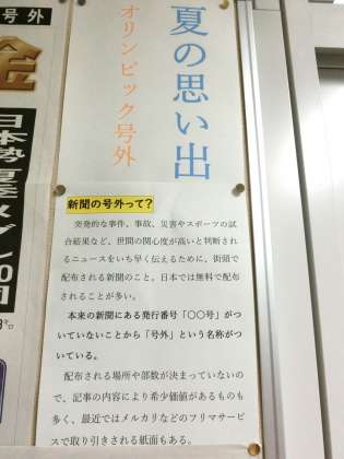 2階の廊下には、今年の夏の思い出が展示してあります。パリオリンピックで活躍した選手たちの写真と記事が掲載された新聞の号外です(菅野)