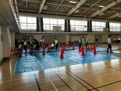 地域合同防災訓練 公開日 2024/09/07 更新日 2024/09/07 今日のできごと 本日の土曜授業は地域の方々にお世話になり、防災訓練を実施しました。 1年生は車椅子体験、高齢者擬似体験でした。 いいね(0)
