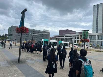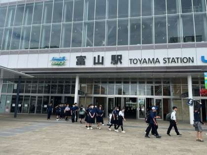 富山駅に到着しました。 少し蒸し暑ですが、みんな元気です。