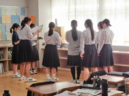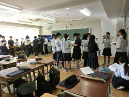 3年の教室からは早くも大音量の合唱の歌声が聞こえます。さすが3年生!(菅野)