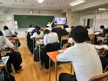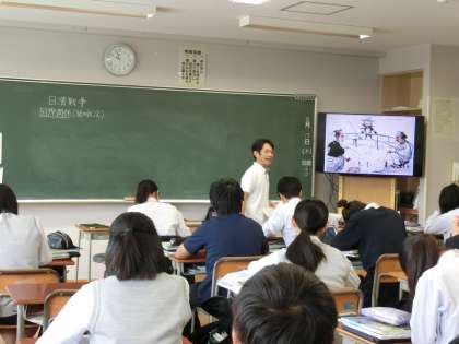 校内研修週間 公開日 2024/10/17 更新日 2024/10/17 今日のできごと 先生たちが授業力を高めるため、お互いの授業を見合う「校内研修期間」が来週末まで設定されています。そこで2年生の授業を見に行く先生に同行させてもらいました。A組社会は歴史の授業で日清戦争を勉強中。教科書に掲載されている図を加工してプリントに載せ、重要事項の知識の定着をはかっていました。さて、この画像の中に先生の後姿が映っています。どこか分かりますか(菅野) いいね(0)