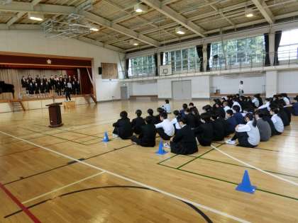 朝礼後の体育館では3年生が合唱コンクールのリハーサルに臨んでいました。各クラスともまだまだ思い描いた通りの合唱には届いていないかもしれません。でもこれからの5日間でまだまだ伸びていきますよ。頑張ってください(菅野)