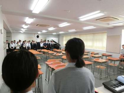 先輩の歌声はさすが! 公開日 2024/10/21 更新日 2024/10/21 今日のできごと 2年生の歌を1年生が聞いています。「すごい…」1年生の横顔を見ると先輩の歌声の素晴らしさに感動していることが伝わってきます(菅野) いいね(0)