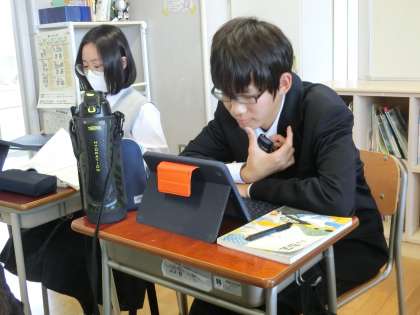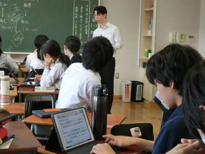 様々なアプローチの方法 公開日 2024/10/30 更新日 2024/10/30 今日のできごと グループ学習のすすめ、とは書かれていますがそのグループも完全に固定されているわけではありません。条件付きで他のグループにアドバイスを求めることも可です。一方、黙々と教科書と向き合い、一人で取り組むことも可、です。中間の画像の生徒は、途中先生から発せられる助言のキーワードを逃さずタブレットに記録していました。すごい!(菅野) いいね(0)