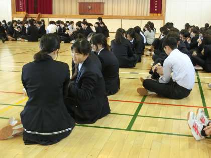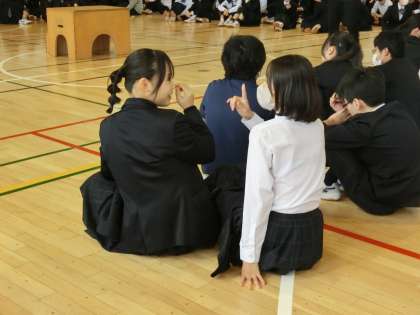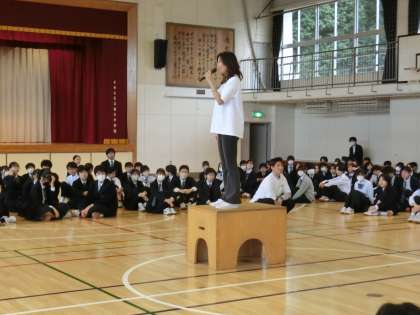 ワークショップ 公開日 2024/11/11 更新日 2024/11/11 今日のできごと 全校朝会に引き続き、来週のミュージカル鑑賞の劇団の方3名に来ていただき、事前ワークショップを行いました。さすが劇団の方。元気ですし、声が通るし、生徒の心をほぐすことに関してのプロプロフェッショナルでした(菅野) いいね(0)