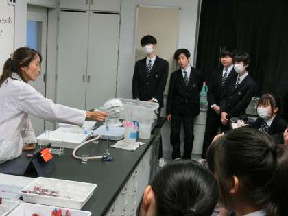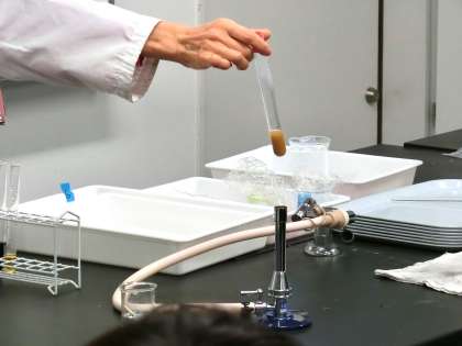 色が変わる… 公開日 2024/11/28 更新日 2024/11/28 今日のできごと 薬剤を入れて温めると色が変化する、を確かめる実験を、まずは先生が示しています。確かに変わりました(菅野) いいね(0)