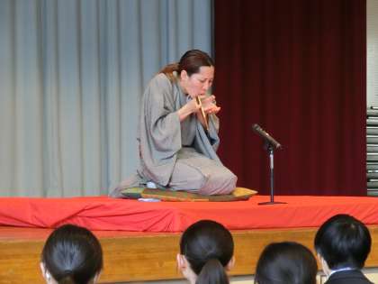 さすがプロフェッショナル 公開日 2024/11/29 更新日 2024/11/29 今日のできごと 今回の落語教室では2席のネタを披露していただきましたがさすがプロフェッショナル。様々な表情で色々なシチュエーションを表現する落語の世界に、初めて落語を見る生徒も引き込まれていました(菅野) いいね(0)