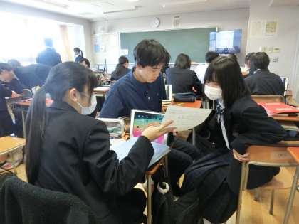 学習を深めるためのペア学習もいつものように自然にやっています(菅野)