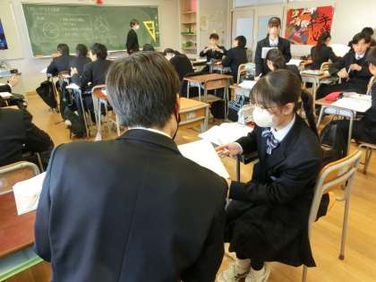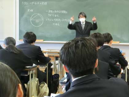 図形の公式を使った問題に取り組んでいいます。今日の課題はかなり難しいものも含まれているのでペアワークで課題に取り組むのもより効果的かもしれません(菅野)