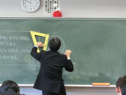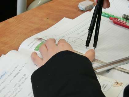 数学の先生は、大きな三角定規とチョークがつけられるコンパスを巧み使い、黒板に図形を描いていきます。当然生徒もそれに習いノートに図形を描きます。数学が専門の先生ほどでなくてもいいですから、焦らず丁寧に描いていきましょう(菅野)