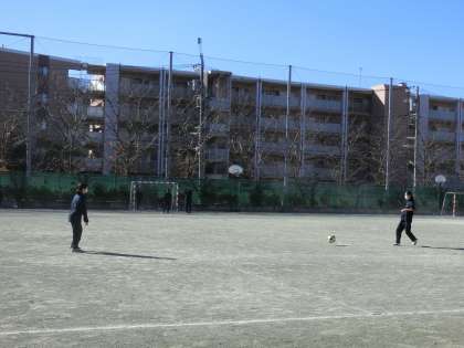 大混雑のボロ市から戻ると、冬の青空の中サッカーに取り組む2年生の姿がありました。思わずカメラを向けると「あっ、ホームページにのるよ〜」というつぶやきが聞こえます。はい、大丈夫です。ちゃんと載せましたからね(菅野)