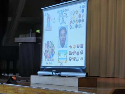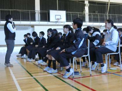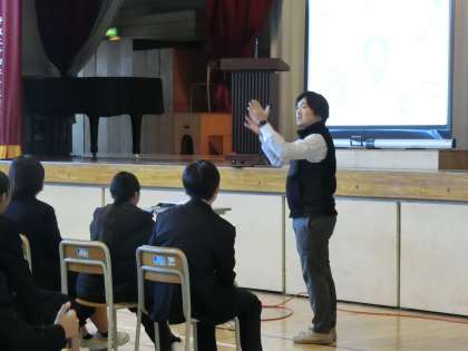 先週、土曜日に行われた1年生の英語科パフォーマンスコンテストです。16人の代表生徒が発表しましたが、先陣を切るのは英語の先生。さすがです。みんなもこれに続こう〜(菅野)