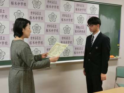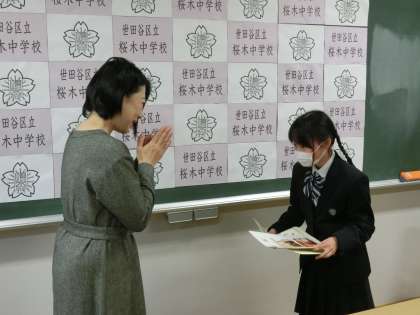 拍手が聞こえる表彰 公開日 2024/12/25 更新日 2024/12/25 今日のできごと 代表生徒による表彰も動画配信されました。表彰状を受け取った後、教室でみんなが拍手をする音が、撮影をしている会議室にも聞こえてきました。これは受け取った人もうれしい気持ちになりますね(菅野) いいね(0)