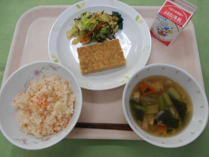 ☆献立 あけぼのごはん 牛乳 松風焼き 野菜ののりあえ 吉野汁