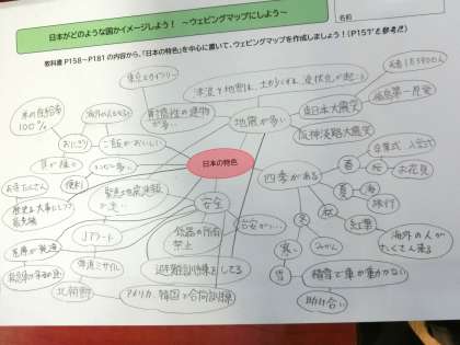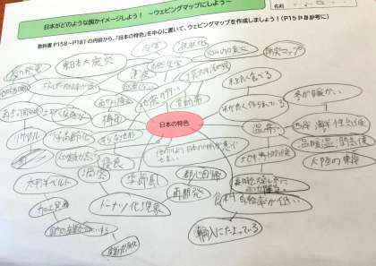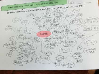 授業終了4分前。たくさん枝分かれしているマップをかいている3名の生徒の作品を写させてもらいました。やはりそれぞれ個性がでますね〜(菅野)