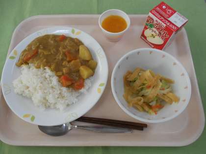 ☆献立 カレーライス セレクト飲み物 パリパリサラダ みかんゼリー