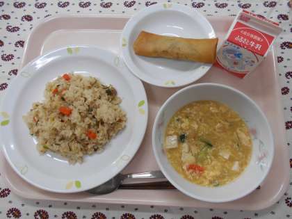 ☆献立 高菜チャーハン 牛乳 棒餃子 中華風コーンスープ