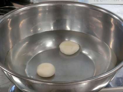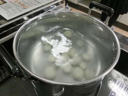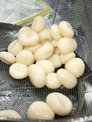 数分間ゆでて、冷水にさらすと表面がもちもちの白玉が出来上がります(菅野)