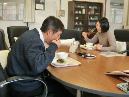 もちろん校長先生と副校長先生も、カツを食べて受験生を応援しています。燃えよ、桜木中3年生!(菅野)