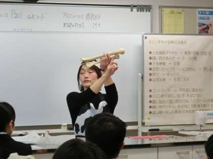 ミルク教室 公開日 2025/02/06 更新日 2025/02/06 今日のできごと 1年生の家庭科の授業は、日本乳業協会からゲストティーチャーをお招きし『わくわくどきどきミルク教室』を開催しました。中学生にとって牛乳に含まれるカルシュウムがいかに大切な栄養素かをわかりやすく解説をしていただきました(菅野) いいね(0)