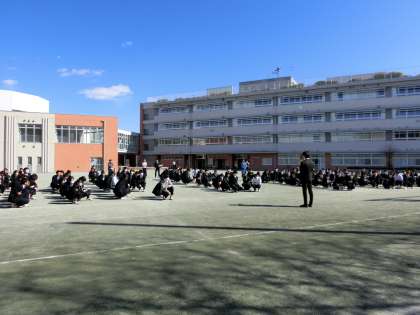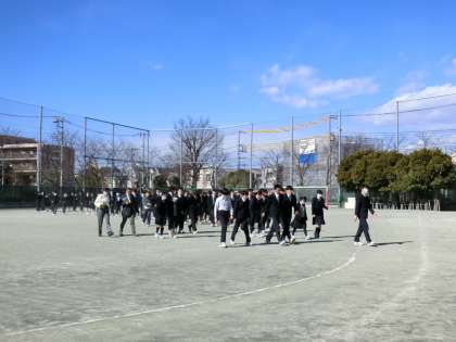校庭で集まる時はもちろん、訓練終了後に教室に戻る時も整然と帰る姿は、この1年間の成長を感じます(菅野)
