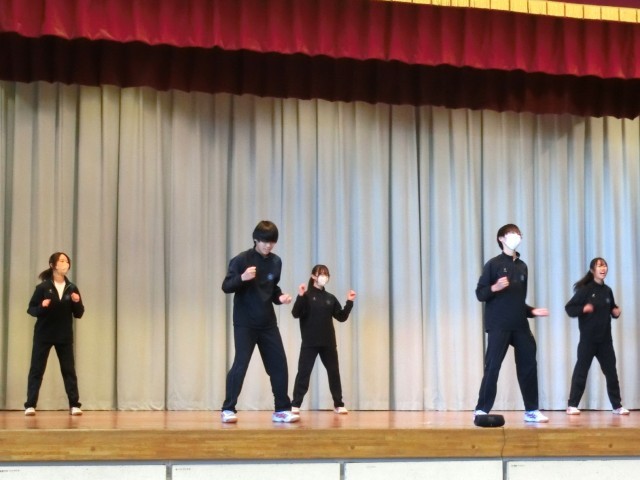先週から取り組んできたダンスの発表会です。緊張しながらも舞台に立っています(菅野)