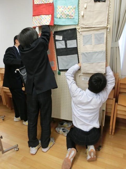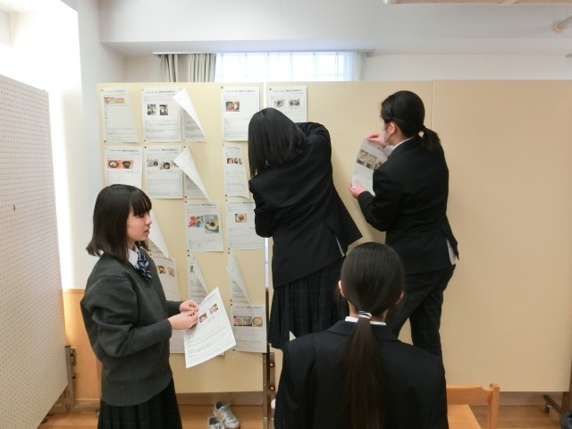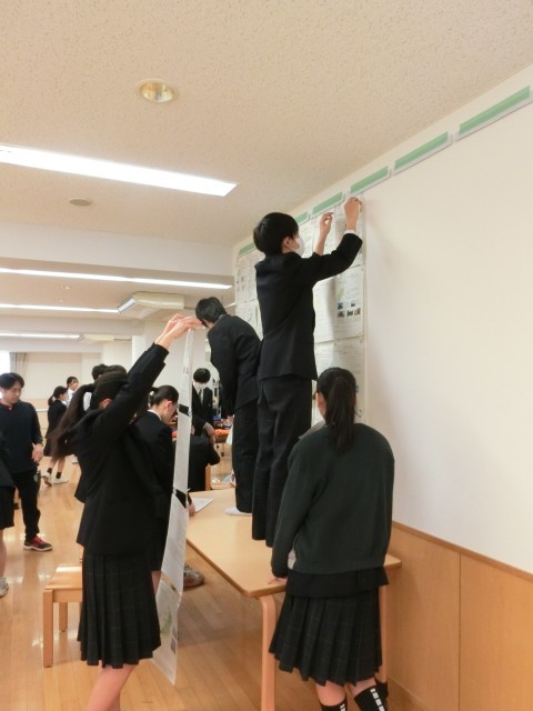 展示準備をしているのは係などの担当になっている生徒だけでなく、ボランティアも多数集まっていました。「○○時には帰るからね~」と言いつつも担当の展示が終わるまでお手伝いしている生徒も多くいます。友達が苦労しているをそのままにしておけない、という気持ちがひしひしと伝わってきて、思わず心の中で拍手をしていました(菅野)