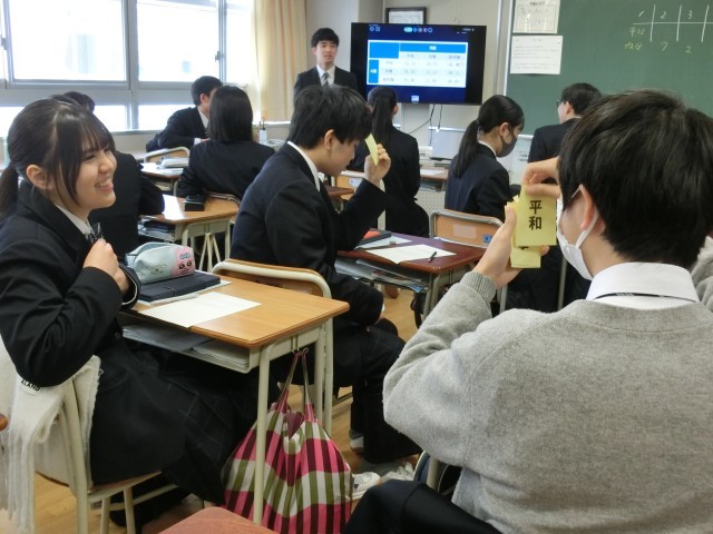 現実の交渉はさらに難しい… 公開日 2025/03/06 更新日 2025/03/06 今日のできごと この生徒はあくまで『平和』を貫こうとしましたが、各攻撃を出され“撃沈’しました!核の脅威の一端を体験することで国際社会が直面する問題を考えるきっかけになれば、と都内の私立高校の先生が考案したゲームです(菅野) いいね(1) 授業 3年