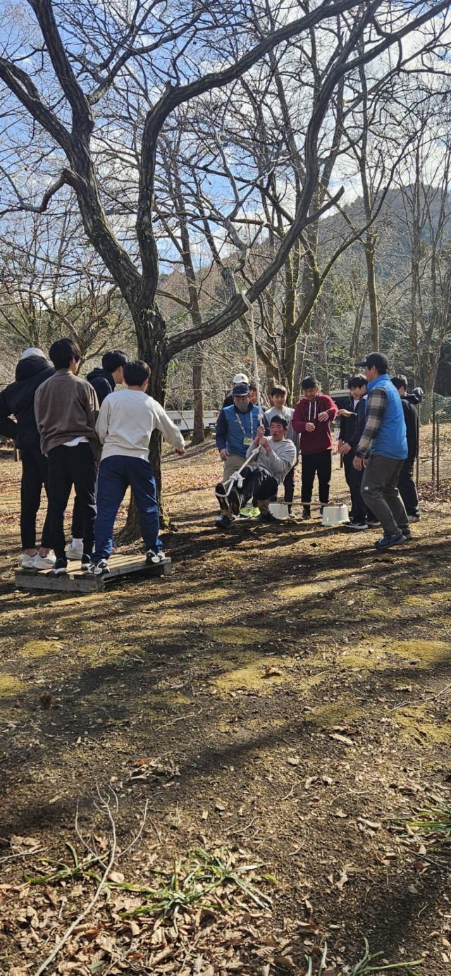 ロープを使って、島から島へ飛び移ります。全員が新しい島に移動できたらミッション成功。このように説明すると簡単に聞こえますが、実は、奥が深いのです。一人では渡れないような微妙な距離にあります。みんなの協力と工夫がないと成功しないんです。