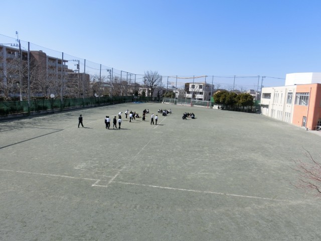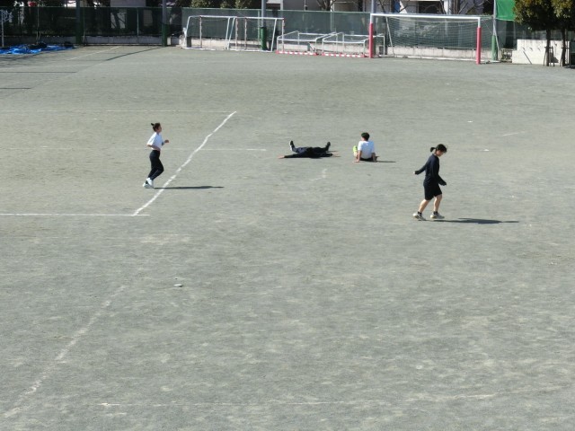 今日は昼休みの避難訓練でした。震度4の地震、という想定で、生徒はそれぞれいる場所で安全確保をする行動をとるというもの。校庭で遊んでいる生徒も、もちろんいつものように静かに中心に集まり、その後出席確認のため教室に戻りました。整然とした行動はさすがです。〔+3〕昼休みは残り数分。そのわずかの時間を鬼ごっこや校庭に大の字に寝転んで楽しむ3年生の姿がありました(菅野)