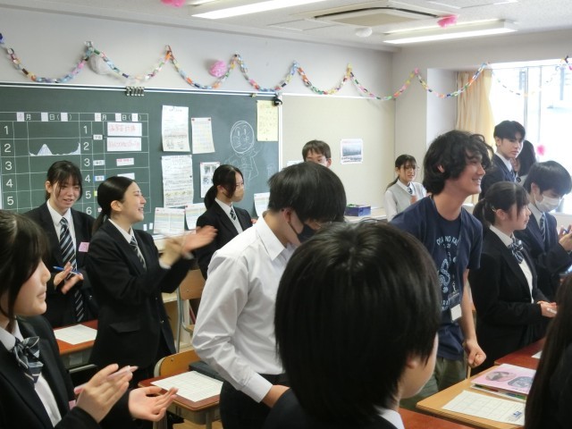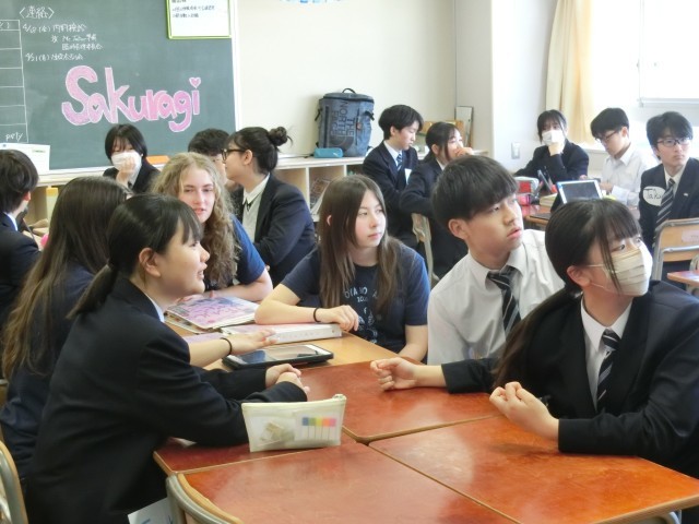 桜木中学校3年生のこのオープンな雰囲気にマウントテーバー中学校の生徒も自然に笑顔がこぼれます(菅野)