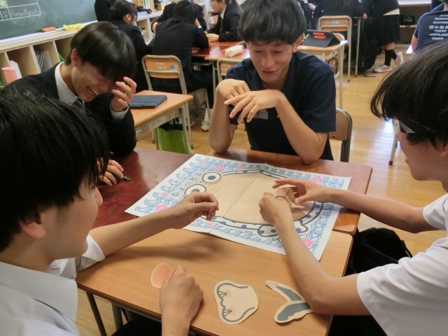 この福笑いゲームはお互いの距離を縮めるのにまさにうってつけです。このゲーム、果たしてアメリにもあるのでしょうか(菅野)