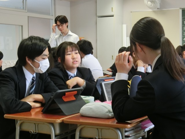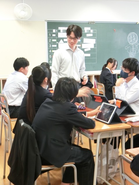 国語の先生に質問をする生徒が多くいます。先生の回答は生徒の思考をより深く、時にはより幅広くしていくためのものなので「あっ、そっか~」とすぐに納得する声は聞かれず、また思考のスパイラルに入っていきます。『生徒たちよ。大いに悩むがよい。それこそが学問の本質なのだ』という先生の声が聞こえてきそうです(菅野)