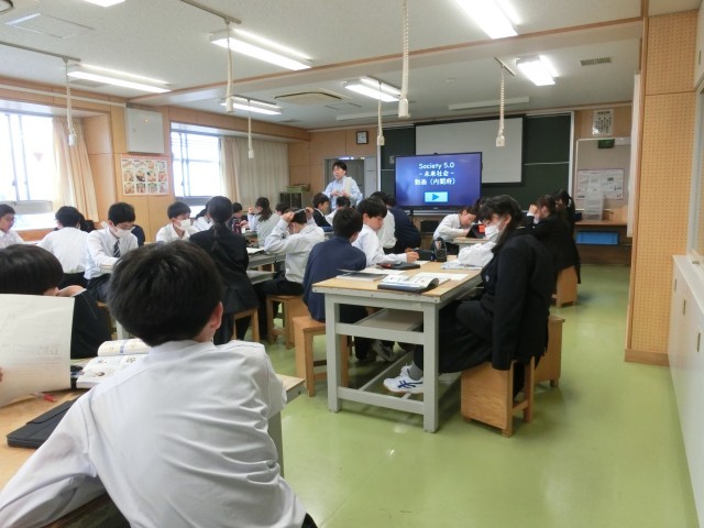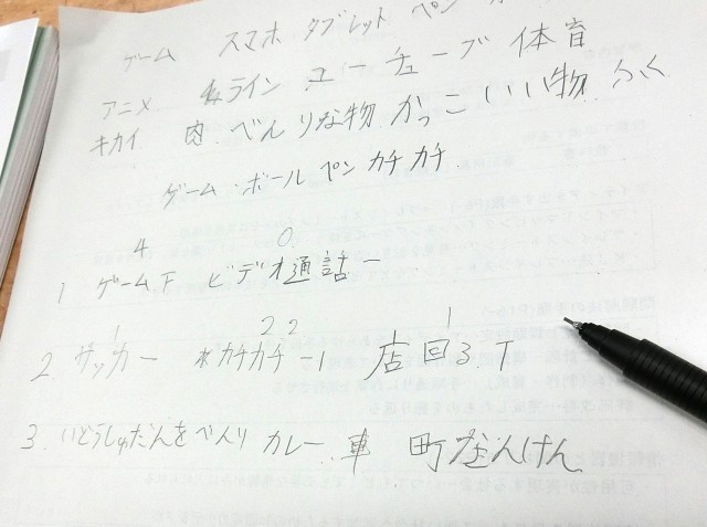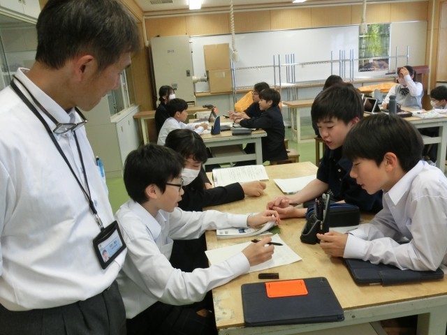 続いて「実際につくってみたい、取り組んでみたいものをグループで2つ選んでみよう」ということで話し合いをしています。校長先生も興味深々。おそらく技術って案外面白い教科だなあ、と思ったはずです(菅野)