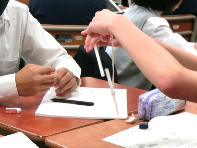 擦る! 公開日 2025/05/13 更新日 2025/05/13 今日のできごと 2年生理科の授業では静電気の性質を調べています。ストローをペーパーでこすり、2本のストローを近づけると。。。実験を成功させるために静電気を起こすのに必死にこすります(菅野) いいね(2) 授業 2年