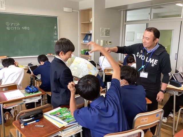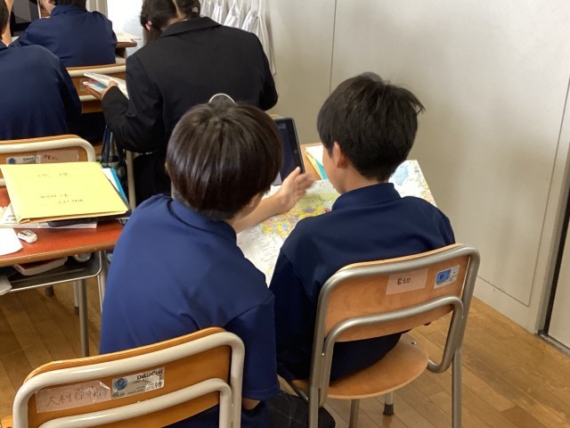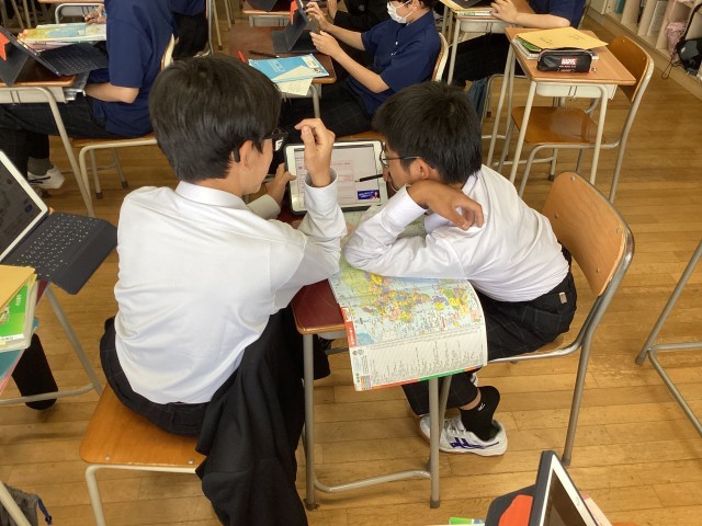標準時間についてまとめプリントに挑戦です。学び合いの姿が多く見られました。先生にヒントを求めて意欲的な質問もありました。世界地図とにらめっこでした。