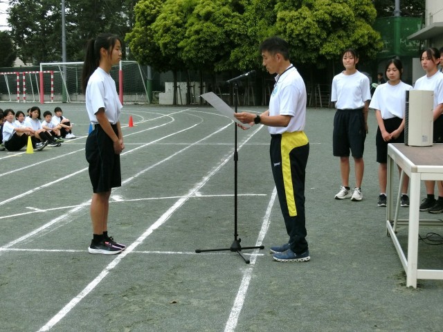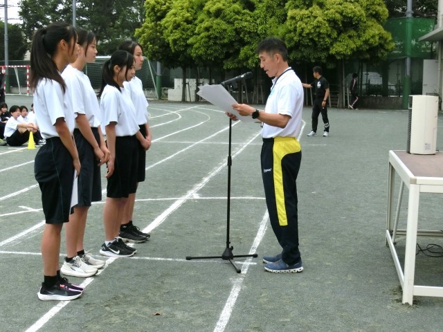 陸上競技部の表彰です。都の地域別陸上競技大会で女子400mリレーでは3位に入りました。おめでとう!(菅野)