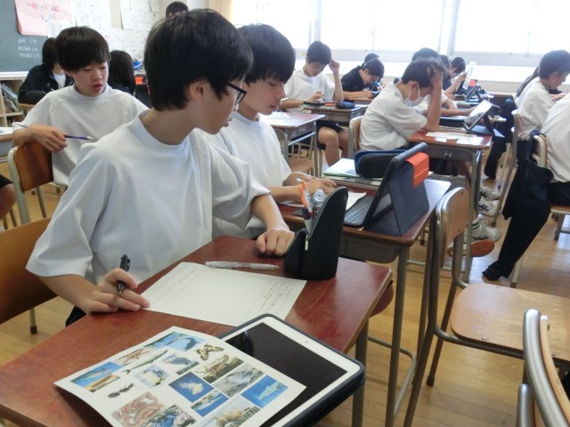 確認作業 公開日 2025/05/21 更新日 2025/05/20 今日のできごと 動物の分類作業が始まると、生徒はあちこちで動物の住む場所や形状について質問、確認しあっていました(菅野) いいね(1) 授業 1年