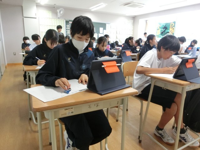 1年生 美術 公開日 2025/05/21 更新日 2025/05/20 今日のできごと 「10分間デッサン」に取り組む1年生です。先生からデッサンの描き方のコツを学んでいます。「途中から、自分の描いた画だけを見つめ続ける人が多い。デッサンなのだから手本になる画を50%以上は見るように」「消しゴムは鉛筆と並ぶ重要なツール」そうだったのか。。中学生の時に聞いておけば、素晴らしい画家になっていたかも、と思うアドバイスにあふれていました(菅野) いいね(1) 授業 1年