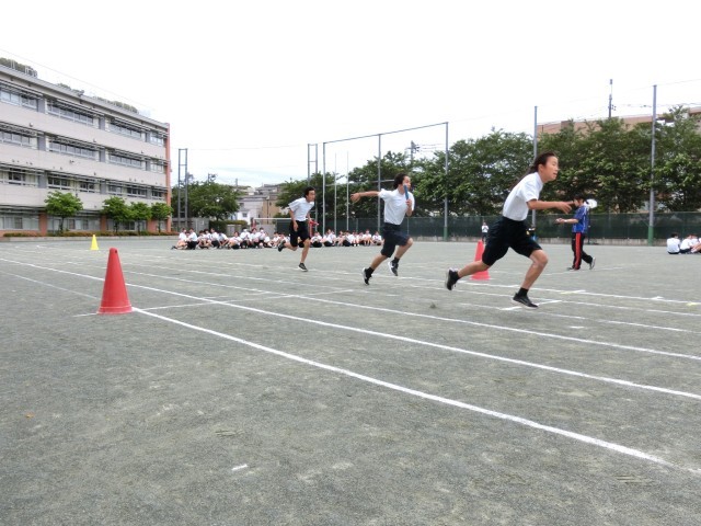 全員リレーのスタートの瞬間を撮ってみました。緊張感が画面越しに伝わってくると思います(菅野)