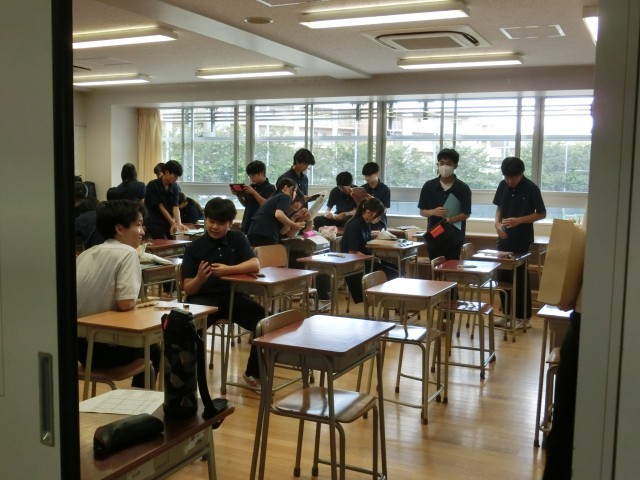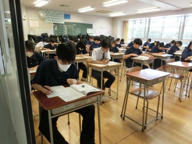 予鈴が鳴る前・予鈴後の問題配布・本鈴直後の5分間を撮ってみました。さすが3年生!(菅野)