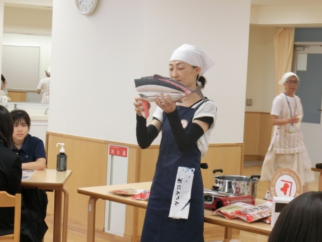和食文化体験 公開日 2025/07/01 更新日 2025/07/01 今日のできごと 教科『日本語』では㈱にんべんのインストラクターの方に和食文化の授業をしていただきました。鰹節の種類や作り方など和食の伝統文化について体験学習をしました。一番だしの澄んだ黄金色を見て驚きの声を上げる生徒たちです(菅野) いいね(1) 授業 地域連携 1年