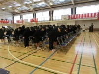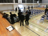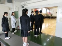 第77回卒業式前日の体育館では、3年生が式の流れの最終確認をしていました(菅野)
