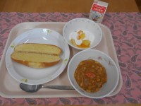 ☆献立ガーリックパン牛乳ビーンズシチューフルーツヨーグルト